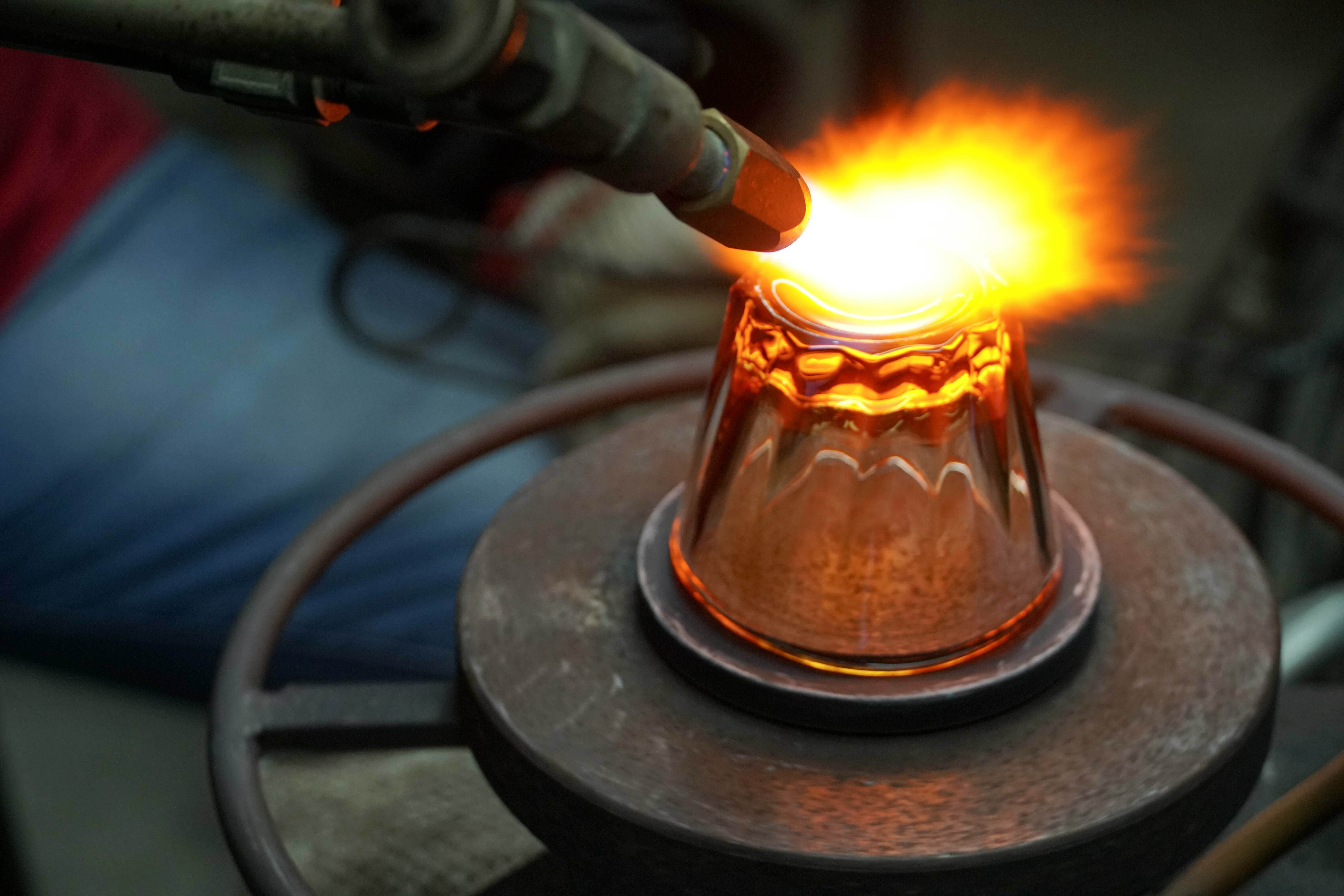 玻璃材質的後加工包含多樣方式,冷熱加工皆有,如拋、磨、火切、水切、咬酸、噴砂、燒貼花紙、噴色、螺牙壓紋、電鍍等,技法多樣。紅琉璃長期鑽研玻璃材質製品,對其加工方式應用得手,並掌握最優質的加工配合廠。