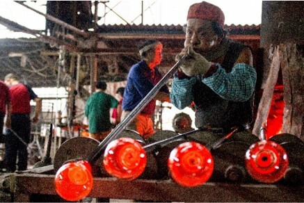 紅琉璃品牌成立以來,以窯口生產為主要運作方式。窯口玻璃的製作特性,只需多位幾十年經驗的匠師輔以精細的鋼模,一條產線排出,幾百到上萬的數量都可製作,彈性大、應用面廣,是台灣玻璃產業復興的重要靈魂。